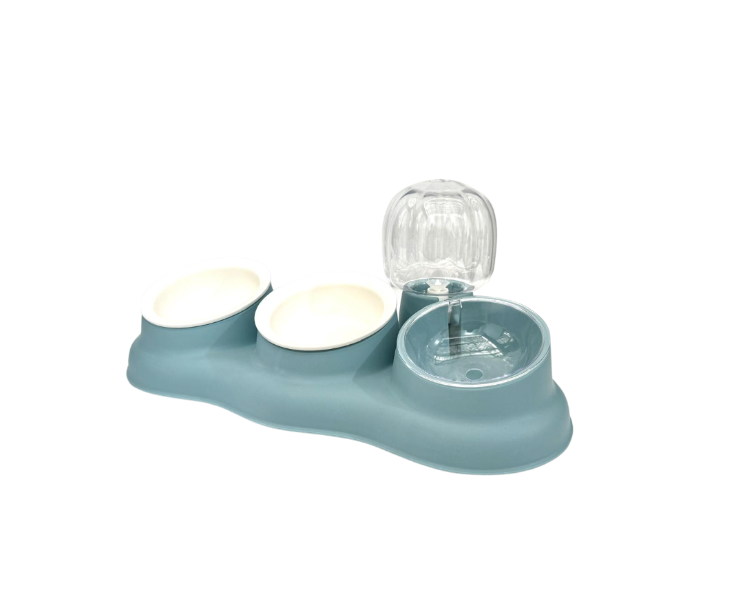 bebedero y comedero 3 en 1 ¡Mantén a tu peludo bien hidratado con nuestro bebedero de plástico para mascotas! Diseñado pensando en la comodidad y el bienestar de tu amigo de cuatro patas, dispensador de agua, comedero para concentrado y comedero para comida humeda.
